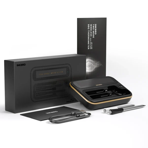 INKBIRD INT-12-BW – älykäs langaton lihalämpömittari, joka on suunniteltu grillaajille. Lämpömittari käyttää Bluetooth 5.4- tai WiFi 5G -yhteyttä, ja pitkiä ja lyhyitä erittäin tarkkoja koettimia voidaan käyttää erikseen erilaisille ruoille, jotka vaihtelevat kooltaan, paksuudeltaan, kypsennysajaltaan ja kypsennysmenetelmältään.
